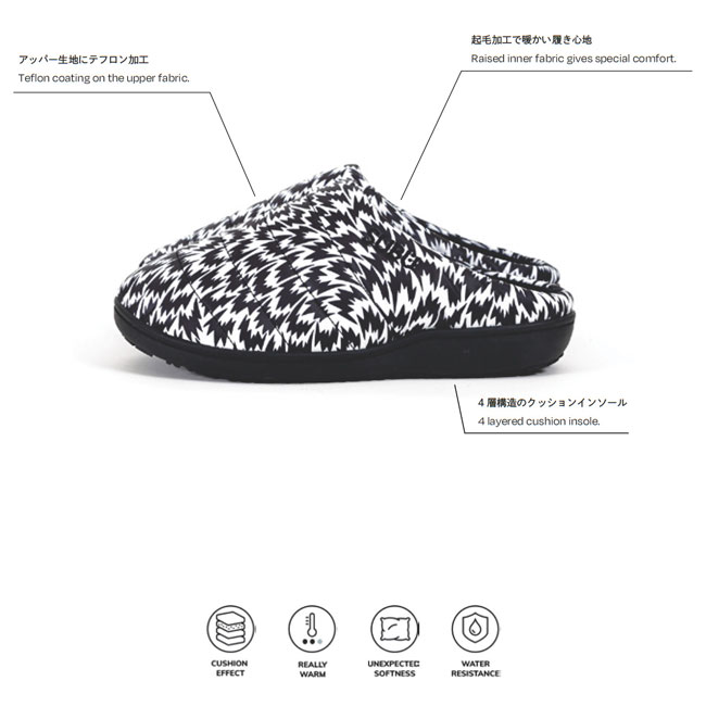ダウンのような暖かさと、起毛加工の内側の生地と4層構造のインソールが足全体にフィットし、優しい履き心地を創り出します。