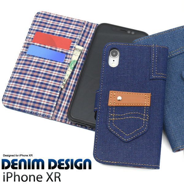 iPhone XR用 チェックデニムデザイン手帳型ケース 男女どちらでもお使いいただける、人気のチェックデニムデザイン手帳型ケース。