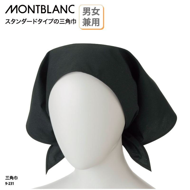 三角巾 住商モンブラン バンダナ 安い おしゃれ 調理 キッチン 店員 無地 シンプル ユニフォーム 黒 ブラック カフェ 厨房 男女兼用 9-231 クリックポスト