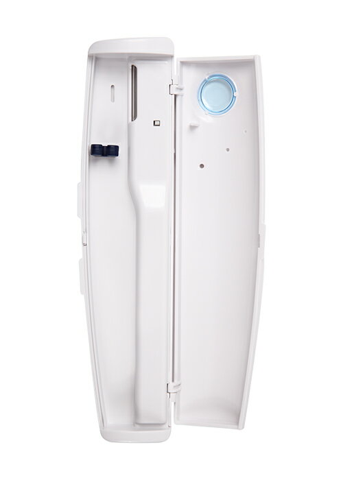 ご使用方法 除菌ケースのカバーを開け、UVランプに歯ブラシの毛先を向けて歯ブラシをセットしてください。