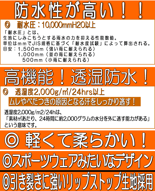 湿気やムレを外に逃す、透湿素材採用のレインウェア フェザーブレス日本製生地使用! 新規取り扱い開始!コストパフォーマンスに優れるストレッチタイプ透湿性レインウェア 機能にこだわった新型の軽量透湿レインウェア。