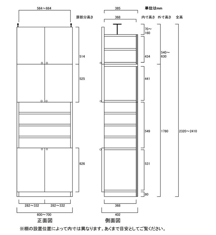 棚高さ調整自在。