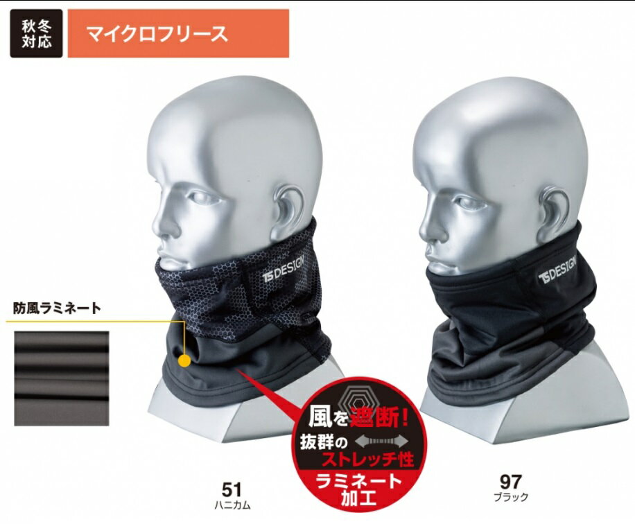 防風ネックウォーマー 84292 フリーサイズ防風ラミネート 起毛 裏ボア 暖かい 温感 冷え防止 インナー ストレッチ 作業 バイク 風よけ 秋冬 TSデザイン 藤和